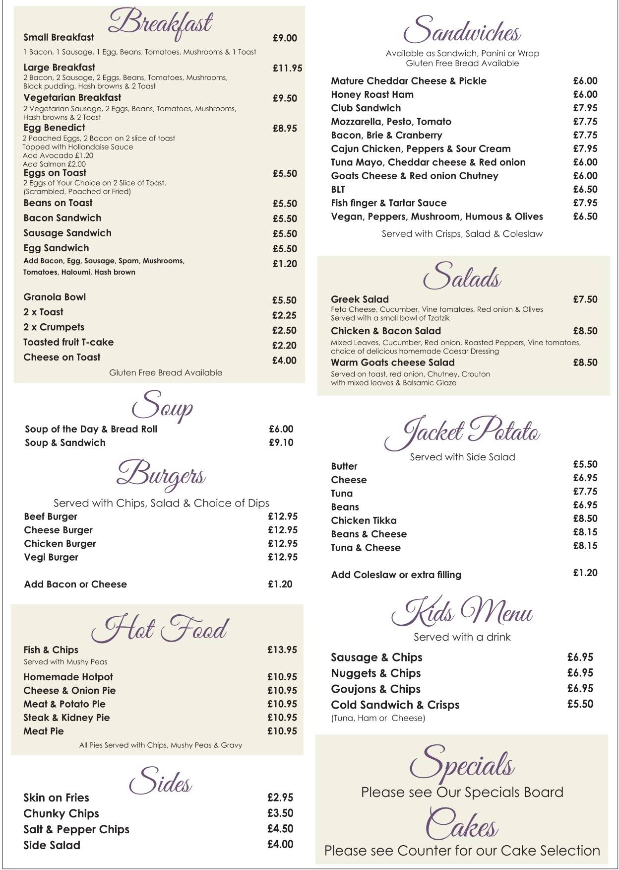 Some of our menu items contain nuts or other allergens. There is a small risk that traces of these may be found in other dishes or food. If you have a food allergy, please speak to a member of staff about this.